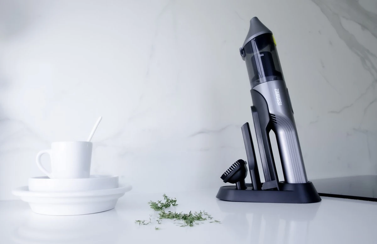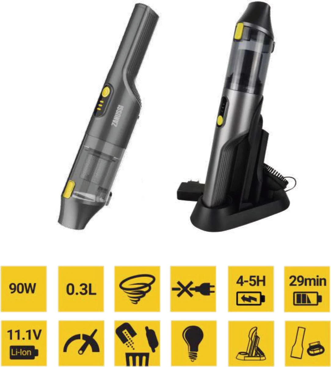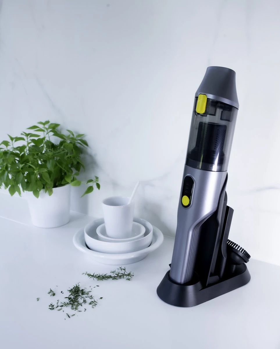 De handstofzuiger is een handig apparaat waarmee je gemakkelijk kleine oppervlakken zoals tafels, auto-interieurs, meubels of gewoon het toetsenbord van je computer schoonmaakt.