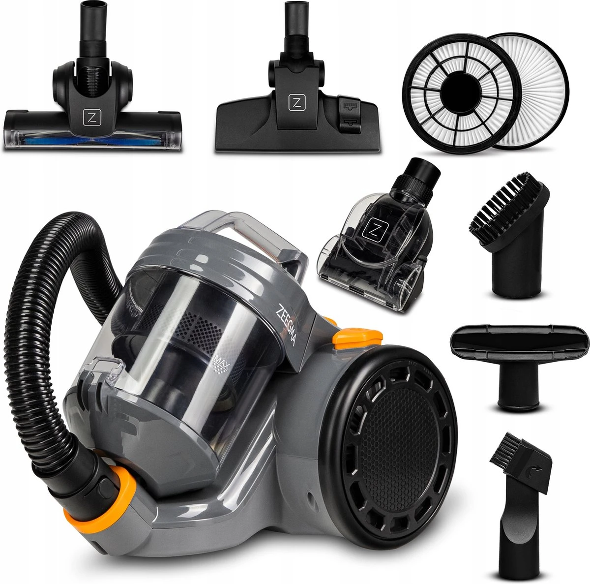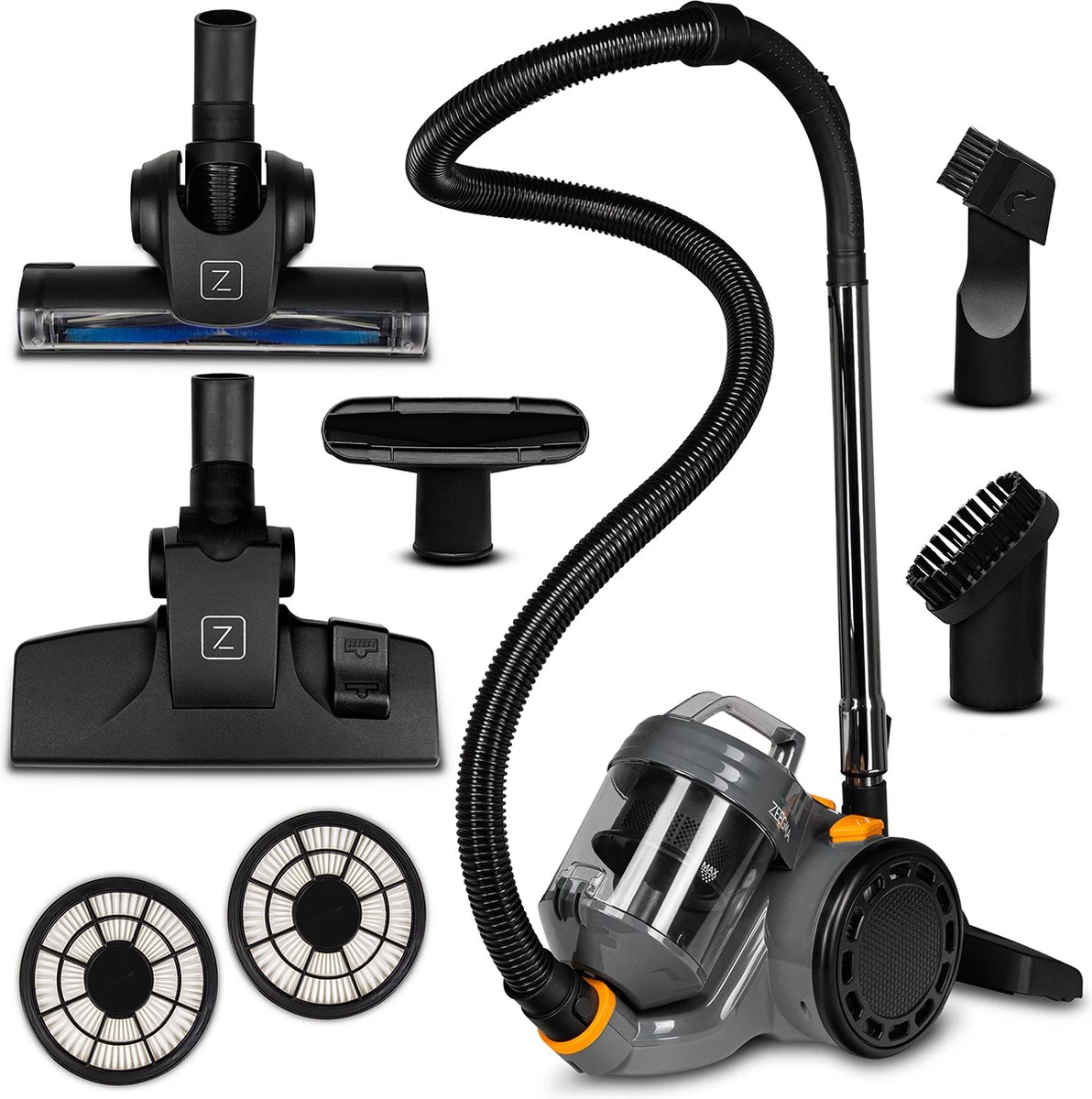 Naast een brede set aan accessoires is de stofzuiger uitgerust met een speciale grote turboborstel voor harde en zachte vloeren. Het is een zuigmond met ronddraaiende borstels dat ervoor zorgt dat de moeilijk te verwijderen onzuiverheden zoals: haren, draden of dierenhaar perfect opgezogen worden.