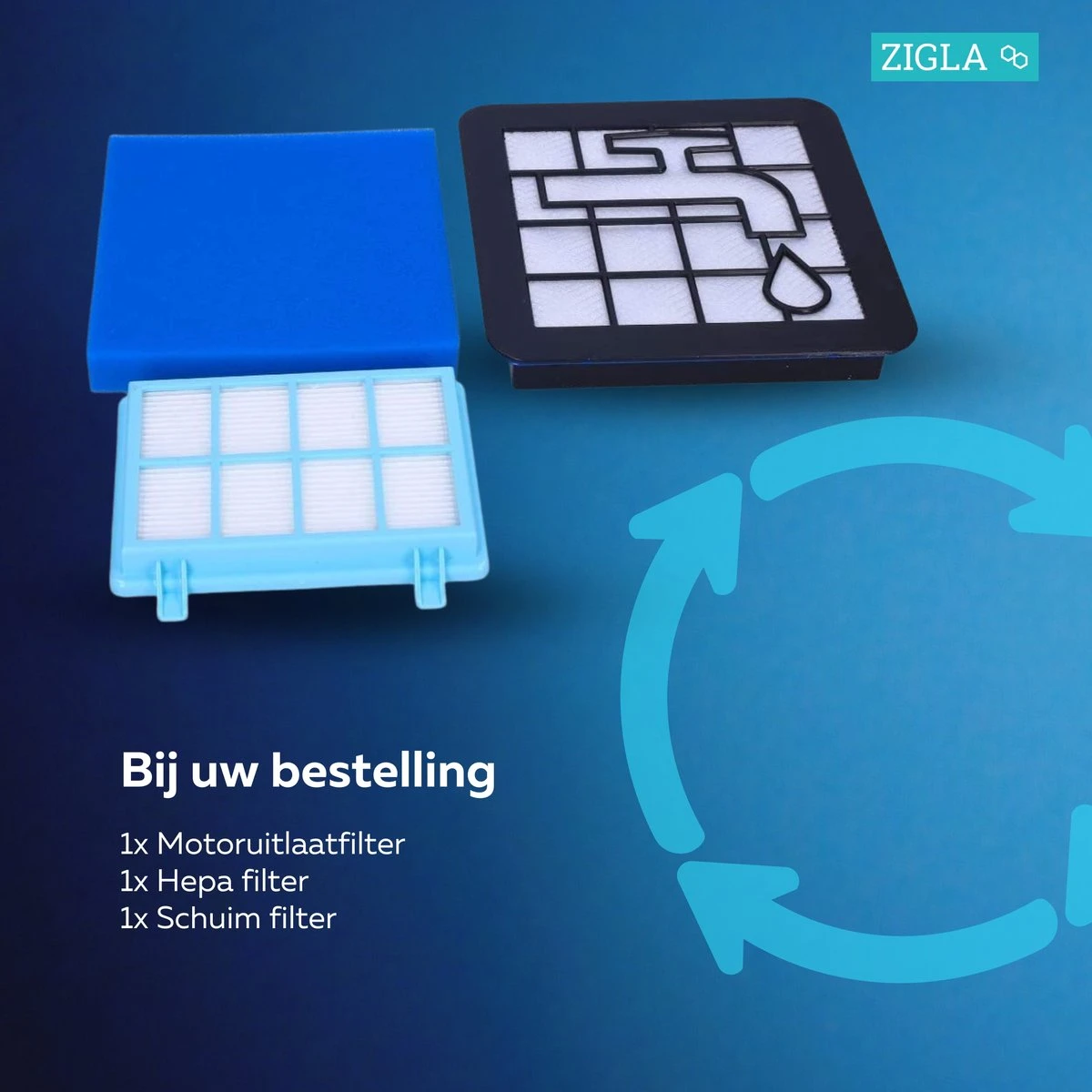 Deze set bevat de motor- en uitblaasfilters die gemiddeld eens per jaar moeten worden vervangen.